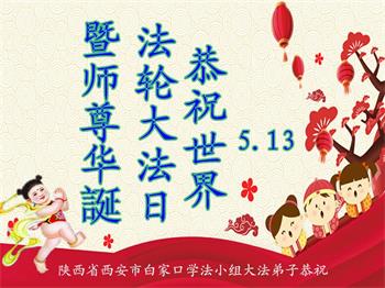 陕西省西安市白家口学法小组大法弟子恭祝师尊生日快乐!暨大法日!