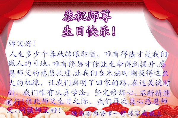陕西省西安一修炼家庭恭祝师父生日快乐!