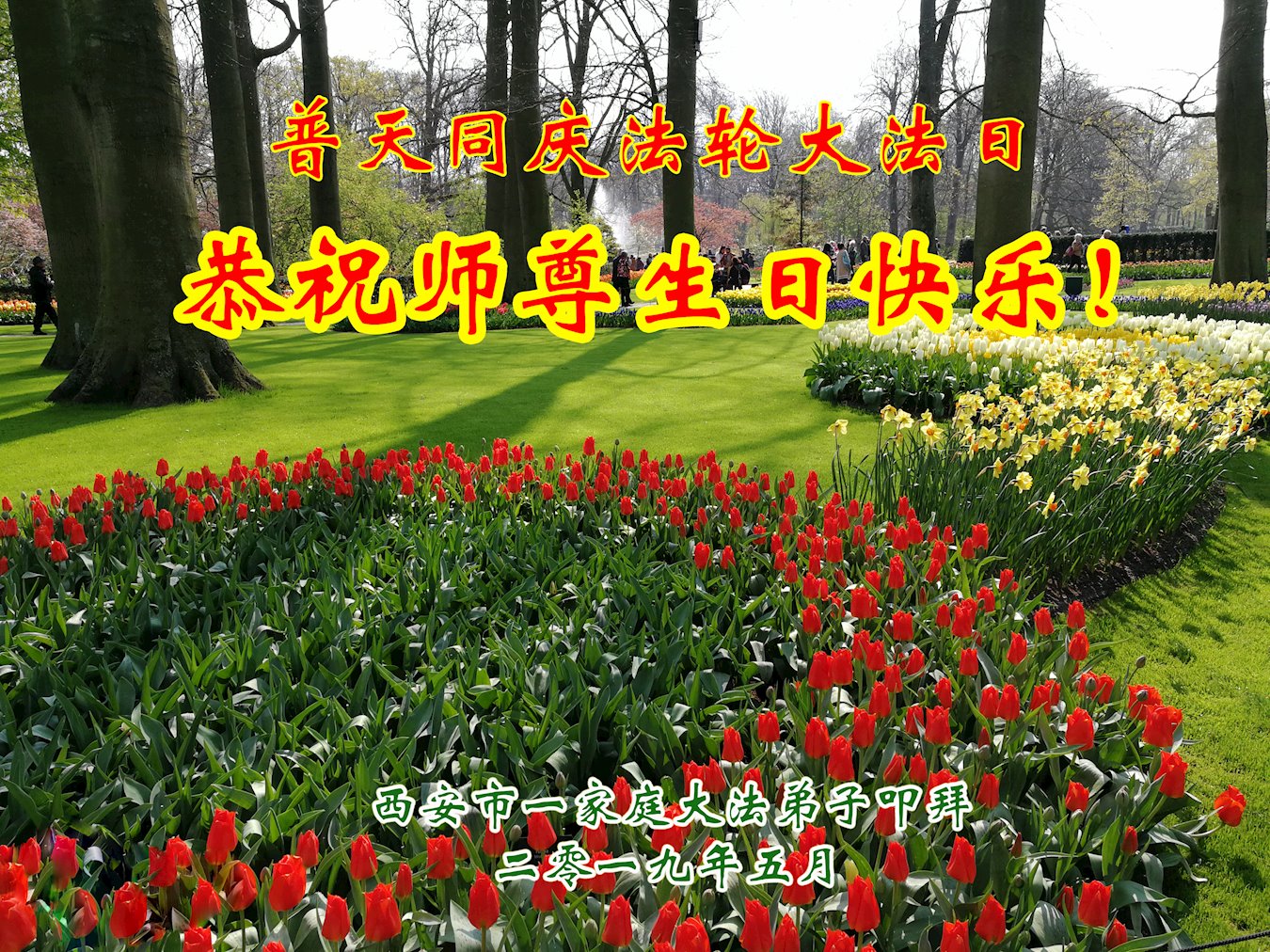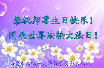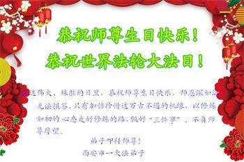 陕西省西安一家庭大法弟子恭祝师尊生日快乐!