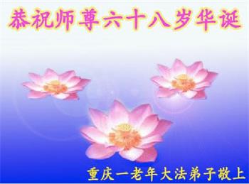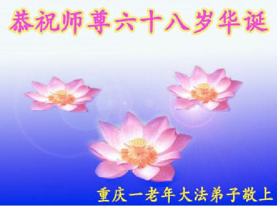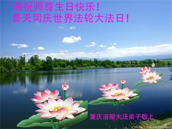 尊敬的师父您好! 是您从地狱中把我们捞起,使我们走向了修炼的路,让我们懂得了做人的法理:先他后我,无私无我,弃掉常人的执着。我们的身体也得以净化,无病一身轻。您的慈悲苦度,我们无言感恩。唯有多学法,学好法,做好三件事。 重庆大法弟子叩拜师父! 重庆涪陵大法弟子恭祝师尊生日快乐!