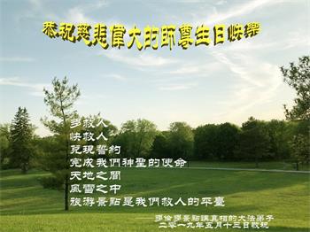 【明慧网二零一九年五月十三日】 加拿大渥太华大法弟子恭祝师尊生日快乐!普天同庆世界法轮大法日!