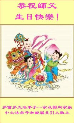 多伦多大法弟子一家及国内家族中大法弟子和亲属共31人恭祝师父生日快乐!