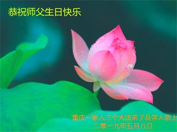 【明慧网二零一九年五月十三日】 重庆一家人三个大法弟子及亲人恭祝师父生日快乐!