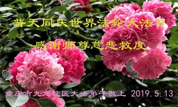 重庆长寿区一老年大法弟子恭祝师父生日快乐!祝贺世界法轮大法日!感恩师父慈悲救度! 重庆长寿区一大法弟子恭祝师父生日快乐!