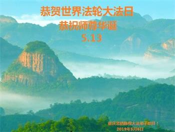 重庆长寿区老年大法弟子恭祝师父生日快乐!普天同庆五一三世界法轮大法日! 重庆市北碚区4人学法小组大法弟子恭祝师父生日快乐!