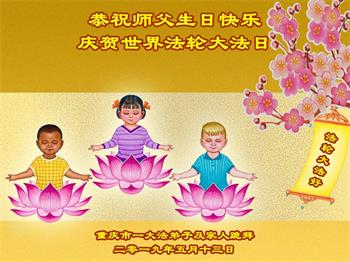 重庆长寿区大一法弟子携带儿女恭祝师父生日快乐!祝贺世界法轮大法日! 重庆北碚静观大法弟子恭贺法轮大法日!祝师尊生日快乐!