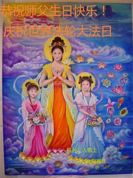 重庆长寿区大法弟子夫妻二人恭祝师父生日快乐!普天同庆五一三世界法轮大法日! 重庆市一大法弟子及家人:恭祝师父生日快乐!庆贺世界法轮大法日!