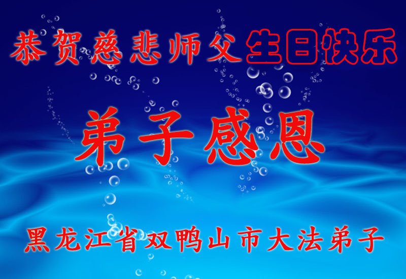 弟子感恩师父的救度之恩!感恩师尊时时刻刻对弟子的保护!弟子用尽人类语言也无法表达对师父的感恩!弟子发自内心的说:法轮大法好!真善忍好!在今后的修炼中、我要认真学法,多背法,听师父话,做师尊的真修弟子,跟师尊回家! 黑龙江省伊春市金山屯区一大法弟子恭祝慈悲伟大的师尊生日快乐!