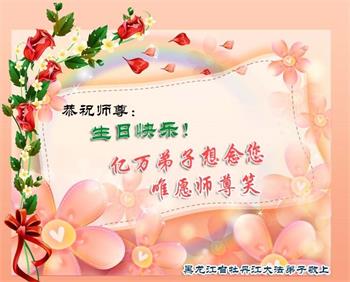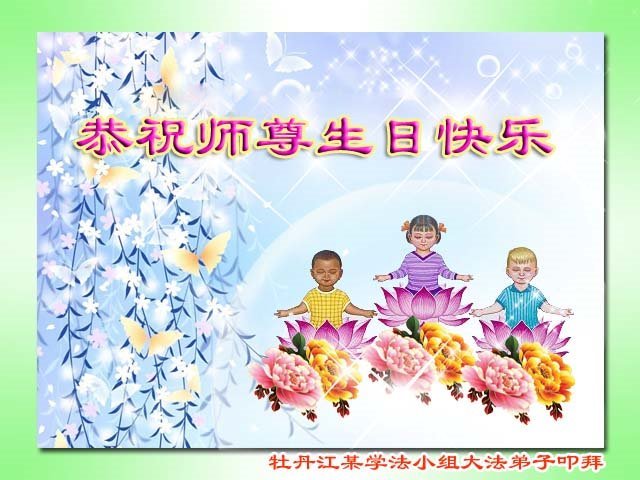 恭祝师父生日快乐! 恭贺世界法轮大法日! 黑龙江省牡丹江一家全体大法弟子恭祝师尊生日快乐!
