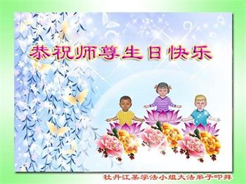 牡丹江一大法弟子及其家人恭祝师尊生日快乐!庆祝世界法轮大法日! 黑龙江省牡丹江某学法小组大法弟子恭祝师尊生日快乐!