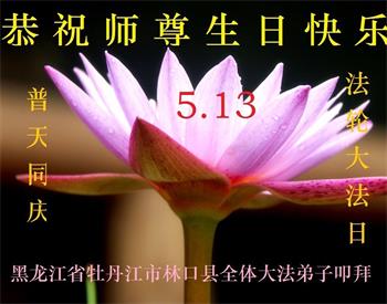 黑龙江省牡丹江市林口县全体大法弟子恭祝师尊生日快乐!普天同庆5.13世界法轮大法日! 黑龙江双鸭山市大法弟子恭祝师尊生日快乐!祝贺5.13世界法轮大法日!