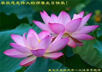 黑龙江省鹤岗市一大法弟子恭祝慈悲伟大的师尊生日快乐!