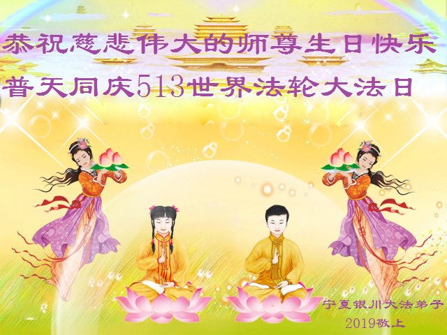 【明慧网二零一九年五月十三日】 宁夏一大法弟子恭祝师尊生日快乐!恭贺庆祝世界法轮大法日!