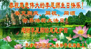 天津宁河区大法弟子家属恭祝李大师生日快乐!祝贺法轮大法日! 山东省济南一明真相的世人恭贺法轮大法日!