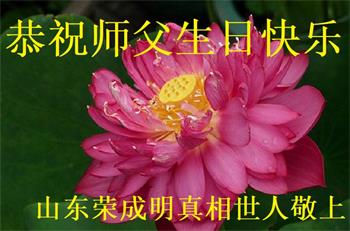 山东省威海市荣成市明真相的世人恭祝大法师父生日快乐! 天津宁河区大法弟子家属恭祝李大师生日快乐!祝贺法轮大法日!