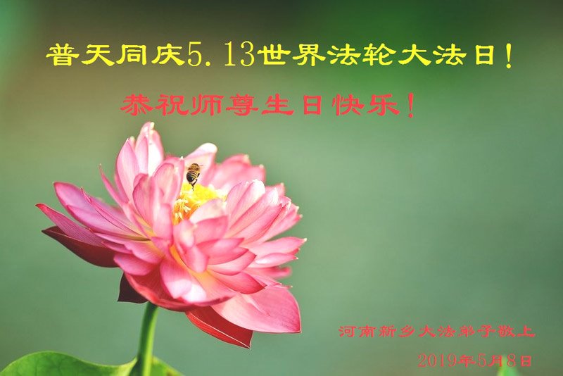 河南新乡市大法弟子恭祝慈悲伟大的师尊华诞!普天同庆5.13世界法轮大法日! 河南新乡市一大法弟子 河南太康一学法小组大法弟子恭祝伟大慈悲的师尊生日快乐!普天同庆法轮大法日!唯有做好三件事报师恩!