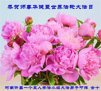 河南洛阳大法弟子恭祝慈悲伟大的师尊生日快乐!恭贺世界法轮大法日! 河南洛阳莲梅学法组大法弟子恭贺法轮大法日!