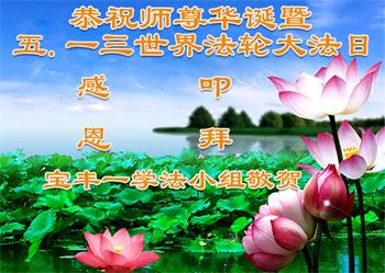 河南平顶山宝丰一学法小组大法弟子贺师尊华诞暨世界法轮大法日!