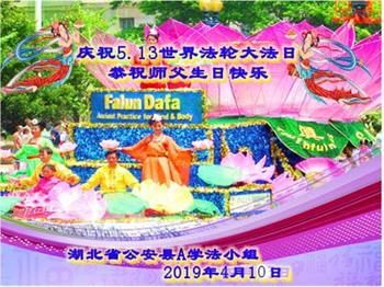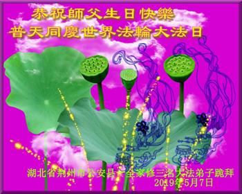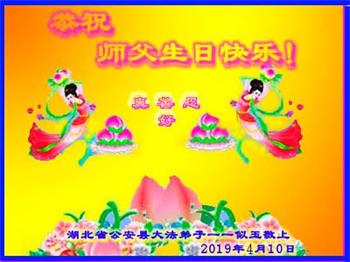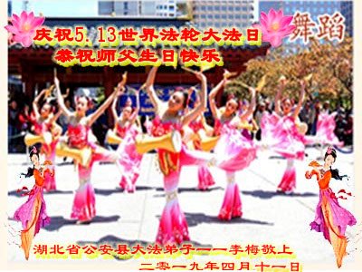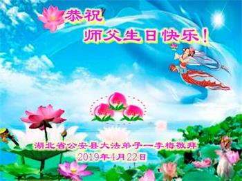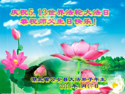 【明慧网二零一九年五月十三日】 湖北省荆州市公安县大法弟子恭祝师父生日快乐!