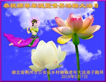 湖北省荆州市公安县一乡村独修老年大法弟子恭祝师尊华诞暨世界法轮大法日!