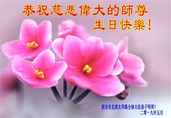 陕西省西安北郊太华路全体大法弟子恭祝慈悲伟大的师尊生日快乐!