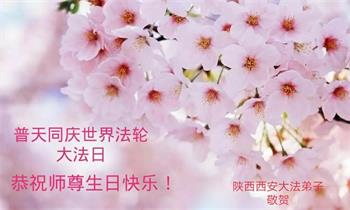 陕西西安大法弟子携家人恭贺世界法轮大法日!恭祝师父生日快乐!