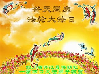四川省达州市开江县供销社系统全体大法弟子恭祝慈悲伟大的师尊生日快乐!庆祝5.13世界法轮大法日!