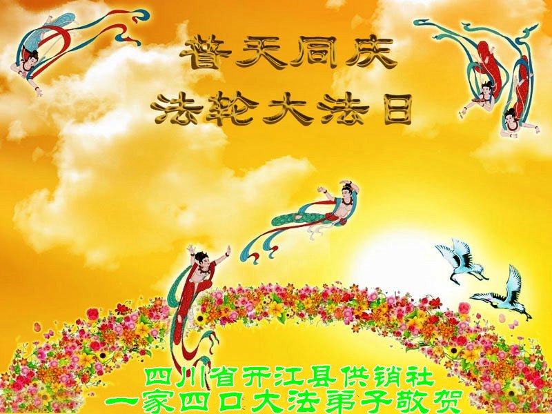 四川省开江县供销社一老年大法弟子同庆同祝同颂五·一三世界法轮大法日! 恭祝慈悲伟大的师父生日快乐! 四川省达州市开江县供销社一家四口大法弟子普天同庆法轮大法日!