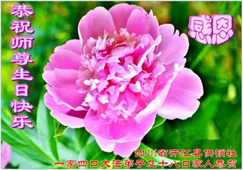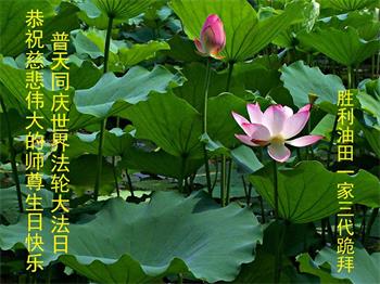 山东省胜利油田一大法弟子全家三代恭祝师尊生日快乐!