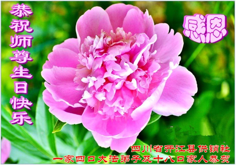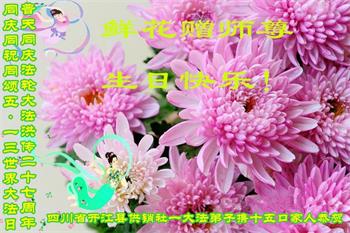 四川省开江县供销社一大法弟子携十五口家人普天同庆法轮大法洪传二十七周年! 同庆同祝同颂五·一三世界大法日! 鲜花赠师尊生日快乐! 大陆财务系统大法弟子恭祝5·13世界法轮大法日暨师尊华诞快乐!