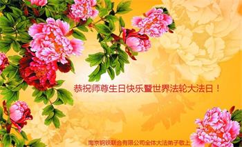 江苏省南京钢铁联合有限公司全体大法弟子恭祝师尊生日快乐暨世界法轮大法日!