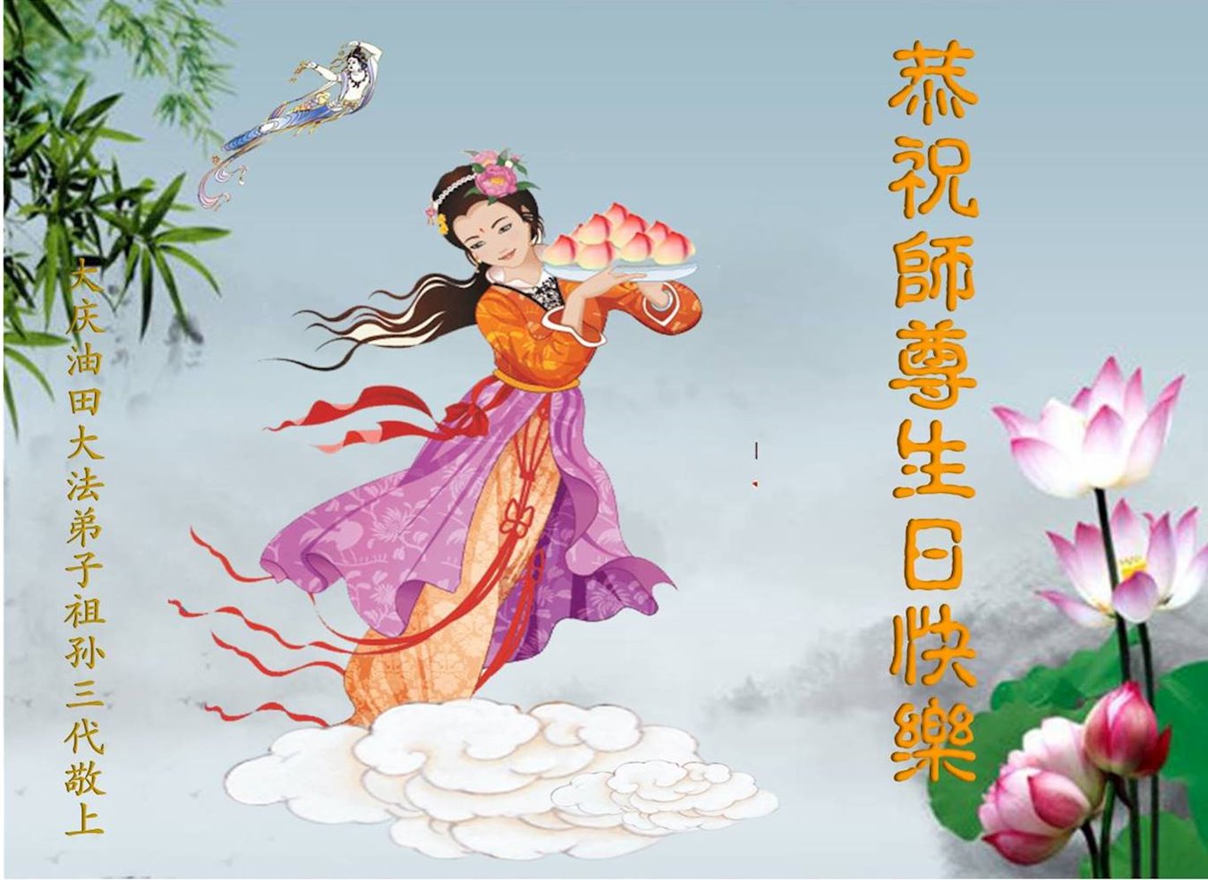黑龙江省大庆油田大法弟子一家祖孙三代恭祝师尊生日快乐!