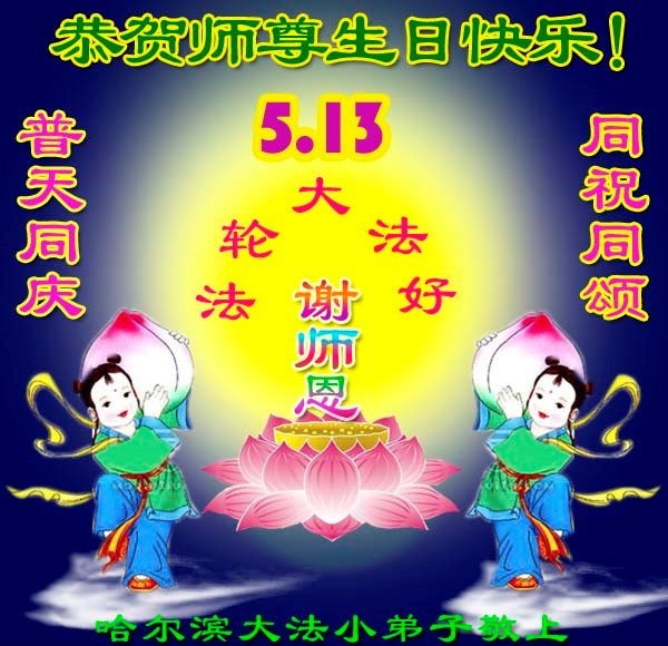 广东省汕头市小弟子恭祝师尊生日快乐!同贺世界法轮大法日! 黑龙江省哈尔滨大法小弟子恭贺世界法轮大法日暨师尊华诞!