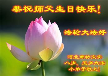河北廊坊文安八岁、五岁大法小弟子恭祝师父生日快乐! 四川遂宁工业圆大法小弟子向慈悲伟大的师父生日问好!