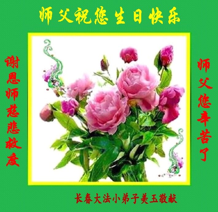 祝慈悲伟大的师尊生日快乐!师尊辛苦了!我们一定不辜负师尊的慈悲苦度,努力做好三件事,多救人,快救人,完成史前大愿,跟师父回家。跪拜师尊! 吉林省长春大法弟子恭祝世界法轮大法日暨师尊华诞!