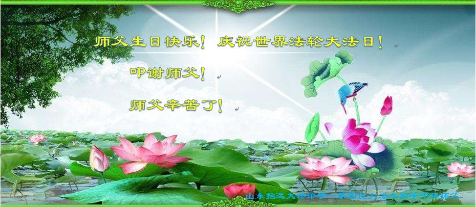 山东烟台招远大法弟子一家四位大法小弟子祝师父生日快乐!师父辛苦了!谢谢师父! 吉林省长春大法小弟子恭祝伟大师尊华诞暨世界法轮大法日!祝贺师尊生日快乐!