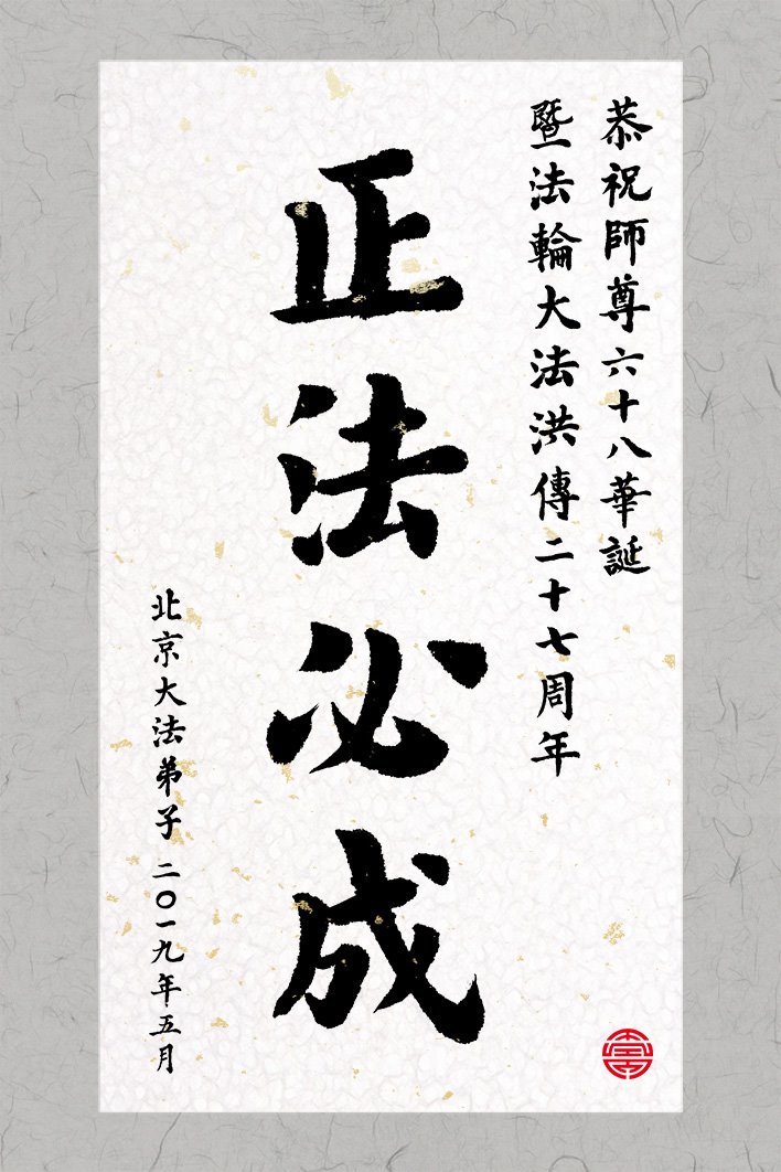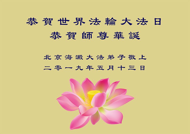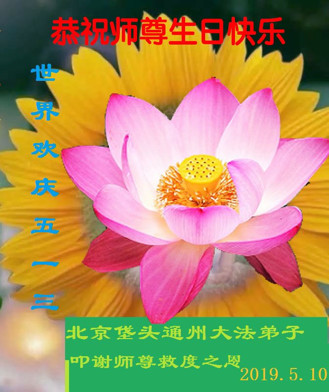 【明慧网二零一九年五月十三日】 北京丰台大红门地区大法弟子恭祝师尊生日快乐!弟子唯有精進实修以报师恩。