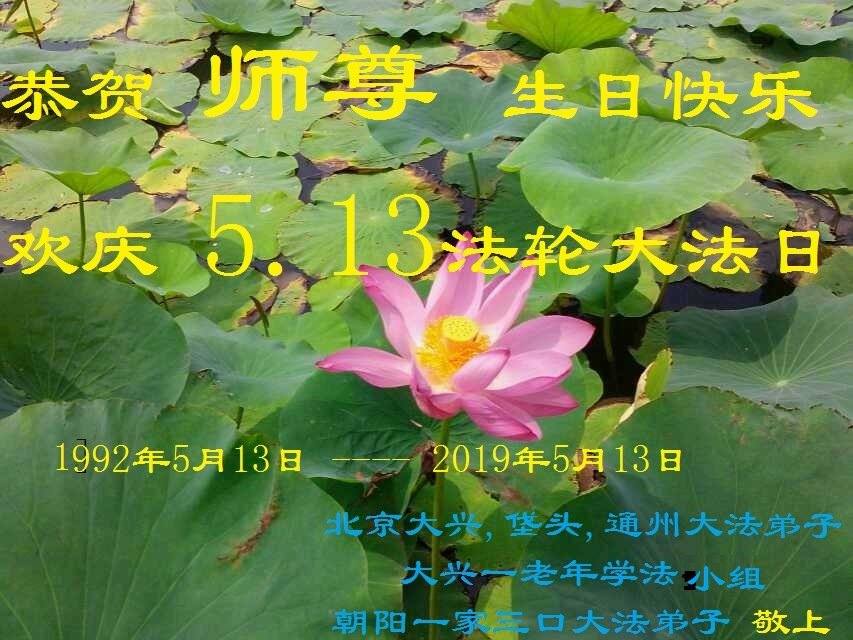 恭祝慈悲伟大的师尊生日快乐!庆祝5.13世界法轮大法日! 北京市丰台区大法弟子敬上 北京市大法弟子恭贺法轮大法日!