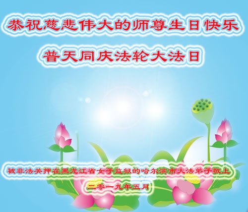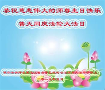 恭贺五一三世界法轮大法日! 二零一九年五月十日 吉林省四平地区被非法关押的大法弟子恭祝师尊生日快乐!