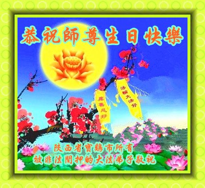 陕西省宝鸡市所有被非法关押的大法弟子恭祝师尊生日快乐!恭贺世界法轮大法日!