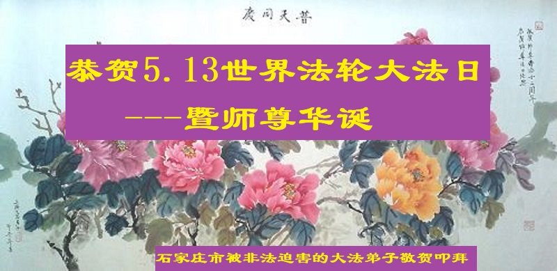 山东省泰安南部三人学法小组大法弟子恭祝师尊生日快乐! 河北省石家庄被非法关押的大法弟子恭贺5.13世界法轮大法日暨师尊华诞!