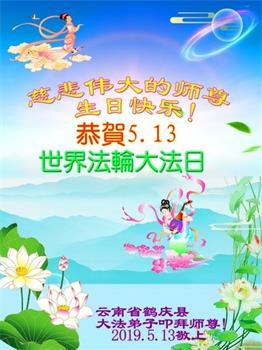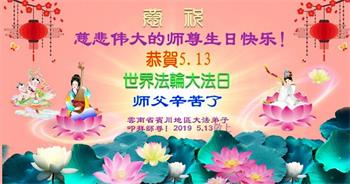 【明慧网二零一九年五月十三日】 大陆大法弟子携明真相世人恭祝慈悲伟大的师尊生日快乐!