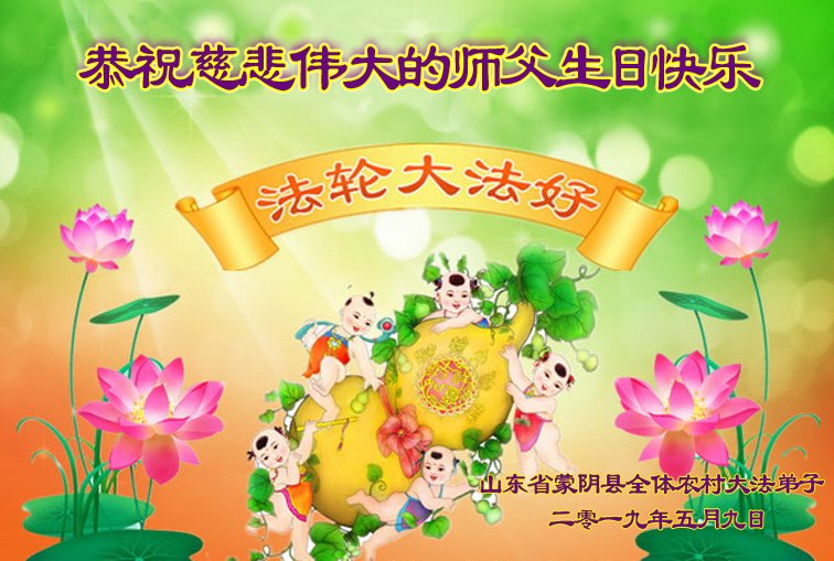 【明慧网二零一九年五月十三日】 山东省临沂市蒙阴县全体农村大法弟子恭祝师父生日快乐!