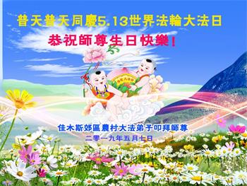 黑龙江省哈尔滨市双城区一农村学法小组大法弟子恭祝师尊生日快乐!暨世界法轮大法日!