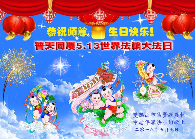 慈悲伟大的师尊您辛苦了!在这正法的最后时刻,弟子们决不辜负师尊用巨大承受延续来的时间,脚踏实地的精進实修!踏踏实实的做好三件事!跟师尊您回家! 佳木斯郊区农村大法弟子叩拜师尊! 二零一九年五月七日 黑龙江双鸭山市集贤县农村中老年学法小组大法弟子恭祝慈悲伟大师尊生日快乐!庆祝世界法轮大法日!
