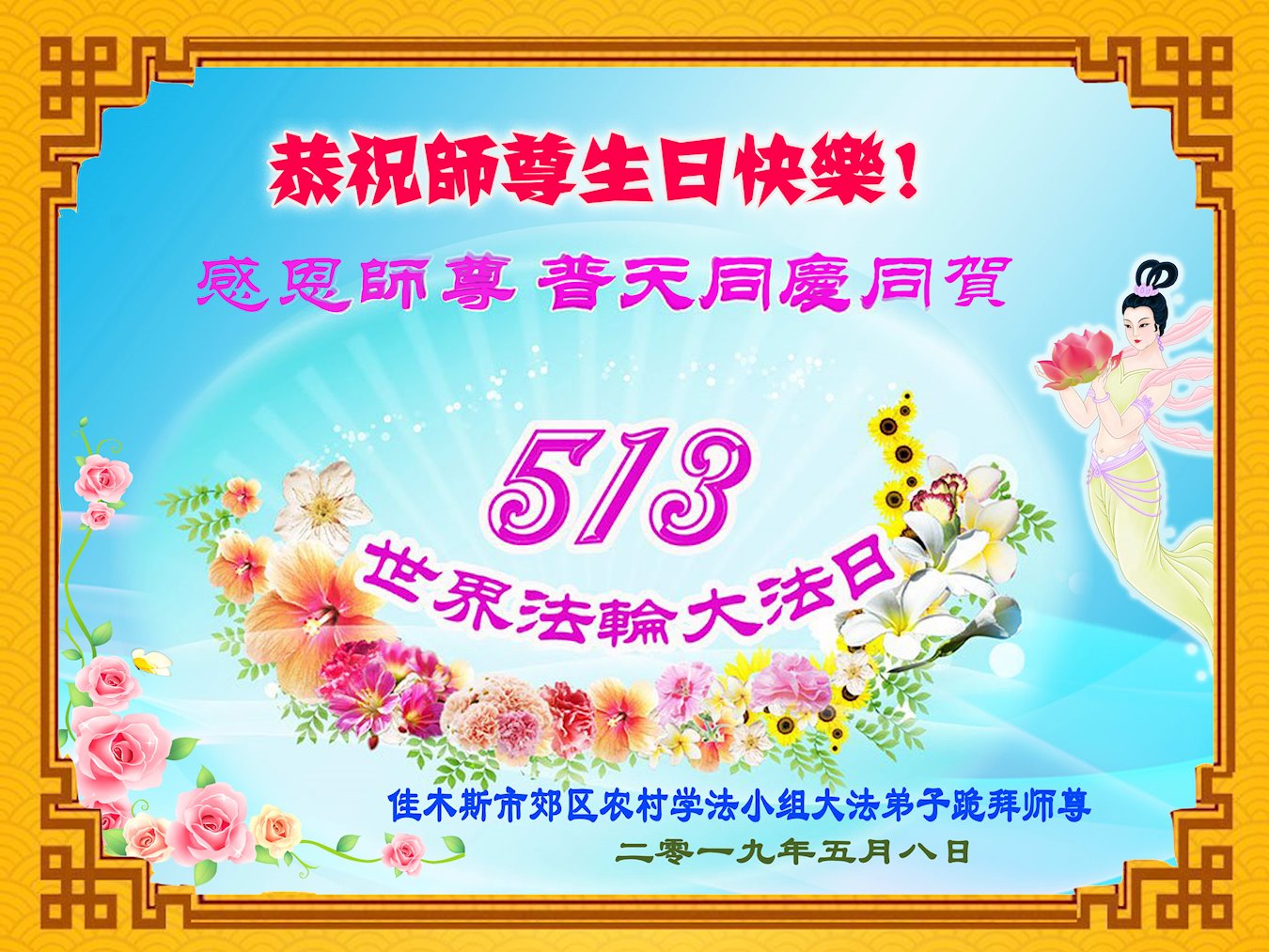 山东省临沂市蒙阴县全体农村大法弟子恭祝师父生日快乐!普天同庆世界法轮大法日! 二零一九年五月九日 黑龙江佳木斯郊区农村大法弟子恭祝师尊生日快乐!庆祝世界法轮大法日!