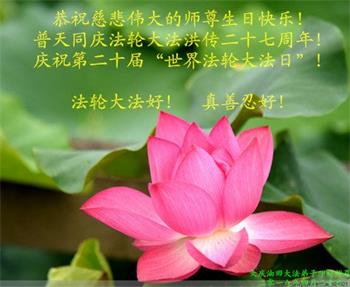 祝愿全球同修更加精進,祝愿更多众生得救。叩谢师恩! 黑龙江省大庆油田大法弟子恭祝慈悲伟大的师尊生日快乐!普天同庆同贺法轮大法洪传二十七周年!感恩师尊慈悲救度!