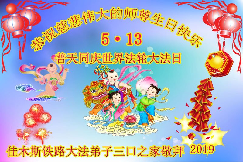 在普天同庆5.13世界法轮大法日的喜庆日子里,我们全体金融系统大法弟子感恩师父的救度之恩!恭祝师父生日快乐!感恩师父的一路保护!在最后的时间里做好自己该做的。 黑龙江省佳木斯铁路大法弟子三口之家恭祝慈悲伟大的师父生日快乐!普天同庆世界法轮大法日!