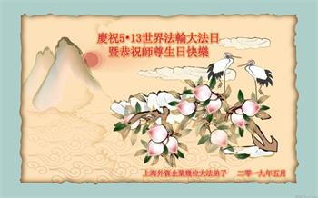 【明慧网二零一九年五月十三日】 上海外资企业大法弟子庆祝5·13世界法轮大法日暨恭祝师尊生日快乐!
