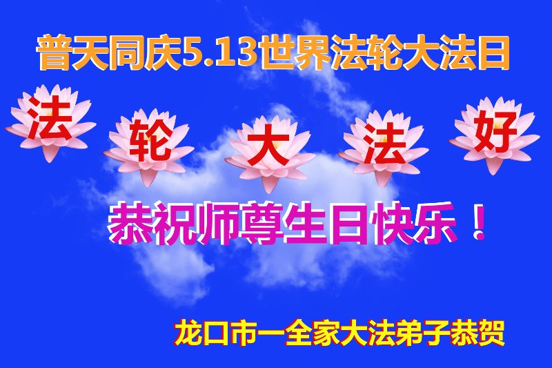 山东省烟台市龙口市一全家大法弟子恭贺世界法轮大法日暨师尊华诞!